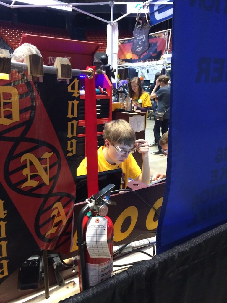 Today we had a practice day at the Boise Idaho Regional. Practice day is the day before competition were all teams attending the regional have a chance to prepare their robots and try new ideas and other things like pit scouting, scouting, trying new strategies, robot driving practice and more. Some of the things our team used this time for include pit scouting, preparing the live stream, updating our website, practice driving our robot, tweaking the robot and more. Also some of our students and mentors took some pictures for us to share with you.